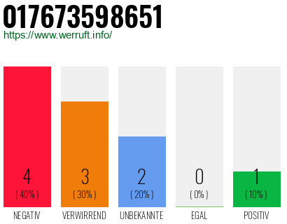 2022-10-01Sandra meldete die Nummer 017673598651 als Verwirrend