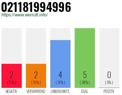 2025-01-15Anrufhasser meldete die Nummer 021181994996 als Negativ