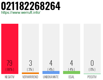 2022-03-04RB meldete die Nummer 021182268264 als Negativ
