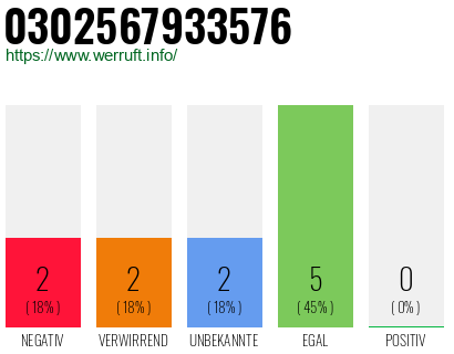 Bewertungen zur Rufnummer: +49302567933576