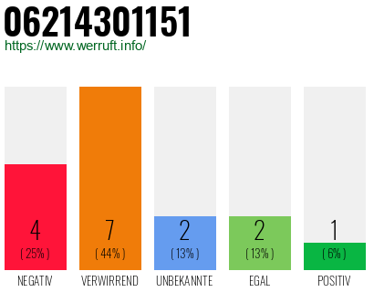 Bewertungen zur Rufnummer: +496214301151