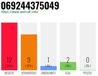 2022-09-20Bernhard meldete die Nummer 069244375049 als Negativ