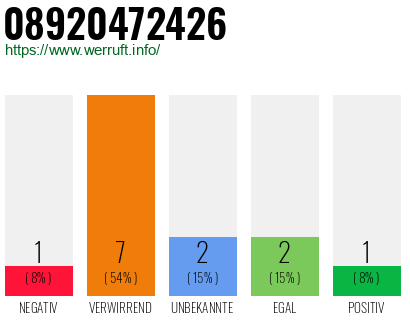 Bewertungen zur Rufnummer: +498920472426