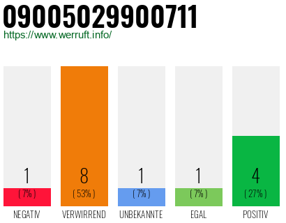 Bewertungen zur Rufnummer: +499005029900711